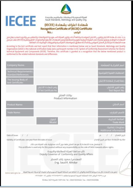 沙特标准局SASO和沙特海关总署要求电气和机电设备供应商需获得SASO颁发的IECEE认可证书,产品才能从沙特海关进口放行。此举旨在改善沙特产品的质量和安全性。