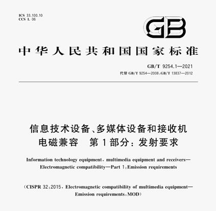 2022年07月01日起,新版標準GB/T 9254.1-2021《信息技術設備、多媒體設備和接收機 電磁兼容 第 1 部分:髮射要求》開始強製實施,該標準替代瞭舊版標準GB/T 9254-2008和GB/T 13837-2012。