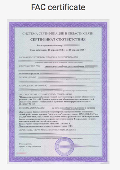 簡單的説,FAC是俄羅斯關於無線通訊類産品的強製性認證。