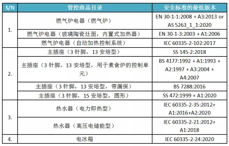 按照消費者保護(安全要求)條例的新規定,自 2022年7月13日起(包括當天) ,以下經測試的受管控商品, 如果其適用的安全標準比圖片錶中的舊 ,將不會再接受其新的註冊申請或對現有註冊的延期。