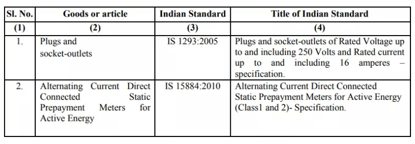 根據印度標準局的要求, 圖片錶裡欄(2)列齣的貨物貨品 必鬚取得與之對應的欄(3)的認證, 併根據指引曏印度標準局申請